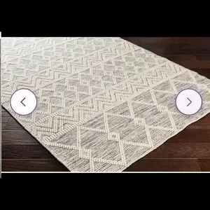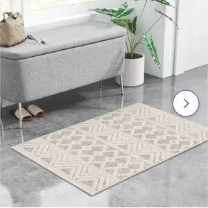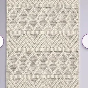 Stylish area rug with a geometric pattern. Features cream and gray colors.