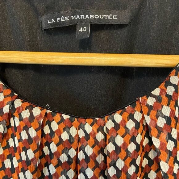Geometric Pattern Brown&Cream Sleeveless Elastic Waist Italian Made Dress 40