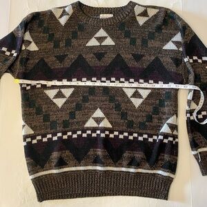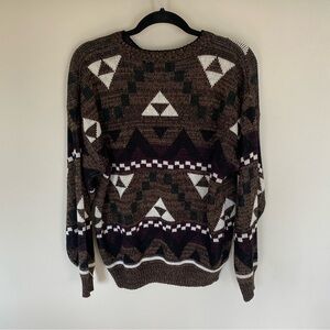 Stay stylish and warm with this geometric pattern crewneck sweater. Featuring a blend of brown and white, this sweater is perfect for any casual outing.