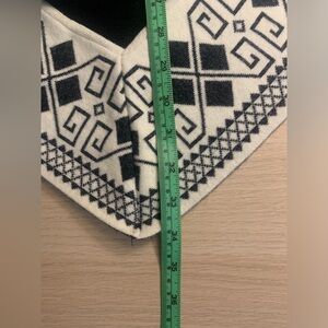 Cute black and white knit cape with a big loose collar. There is no material tag.