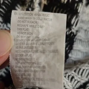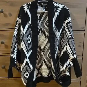 Stay cozy and stylish with this black and white geometric pattern sweater. Perfect for layering and adding a chic touch to any outfit.