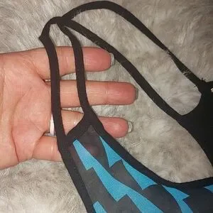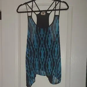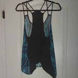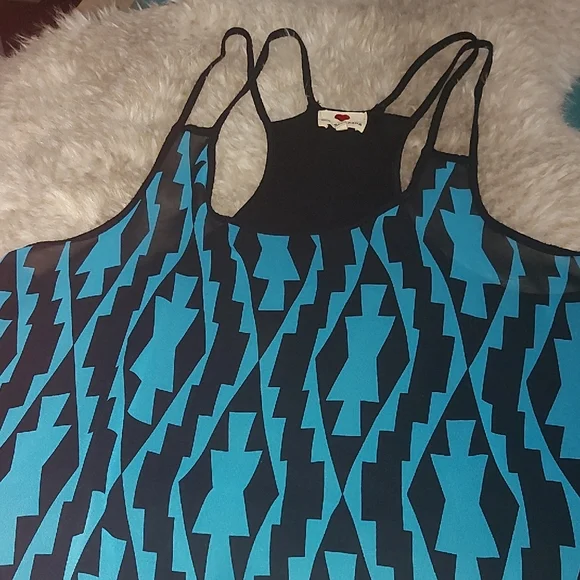 Stylish tank top with a bold geometric pattern in electric blue & black.