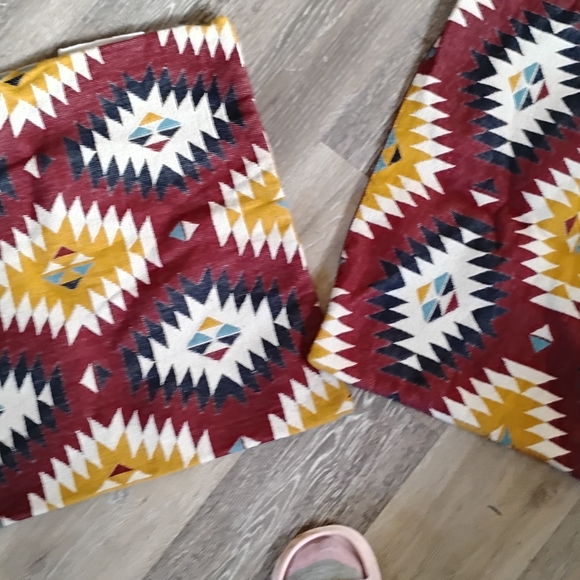 Set of throw pillow covers with a vibrant geometric pattern. Features red, yellow, and white colors. from ikea
