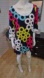 Elevate your style with this chic tunic featuring a bold geometric pattern. The vibrant design in blue, pink, and yellow adds a lively touch to any outfit.