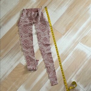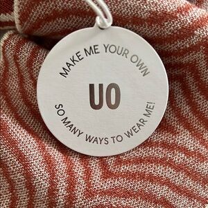 Unique scarf with a bold geometric pattern. Features a mix of rust and cream colors. Pulls over your head like a turtle neck and the ties wrap around your neck and shoulders.
