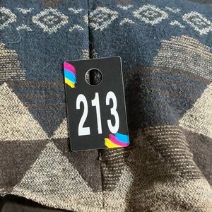 Elevate your style with this chic geometric patterned vest. Featuring a blend of blue, gray, and brown tones, it's perfect for any occasion.