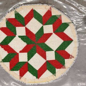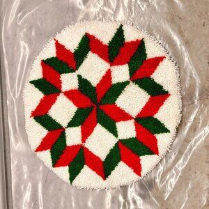 Geometric Star Tree Skirt Latch Hook Rug VTG Hook Yarn Rug Tree Skirt