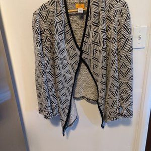Grey geometric design cardigan sweater.