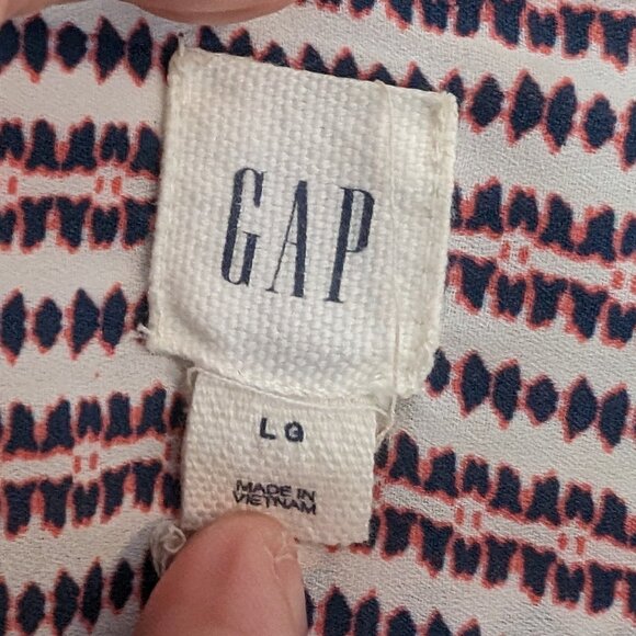 Says it's L, but I'm a 14/16 and it fits with room to spare. Neat pattern, lining underneath, and waist ties allow for it to adjust as the BBQ goes on ;) GOod for work, a day out, or a date. Wear on it's own or under a jean jacket, super cute!