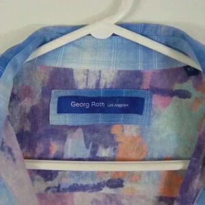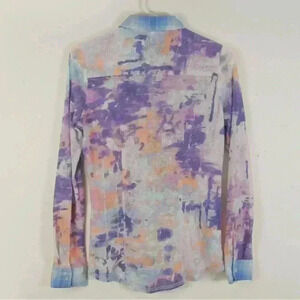 Georg Roth Los Angeles Semi Sheer Blue Purple Watercolour Button Up Blouse Top