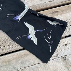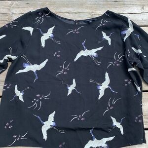 George Black Crane Bird Print Bell Sleeve Blouse Top XL