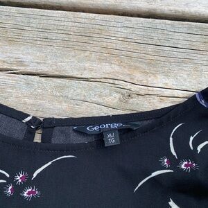 Add a touch of elegant whimsy to your wardrobe with this lovely black blouse from George. Featuring a striking print of white cranes with subtle purple accents and delicate floral motifs, this top is sure to turn heads.