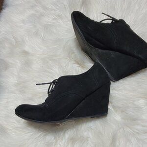George Black Faux Leather Faux Suede Round Toe Heel Lace Up Wedge Boot Size 8