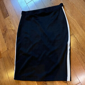 🤍🖤comfy chic timeless white side contrast line black pencil midi skirt preloved good condition photographed same day shipping from smoke free home