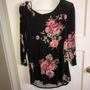 George Black and Pink Asymmetrical 3/4 Sleeve Blouse