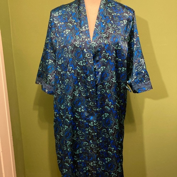 Chic satin robe with a vibrant floral design. Belt is missing.