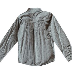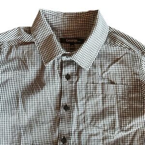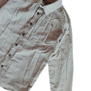 Black and white, gingham print. Full long sleeve button down formal dress shirt.