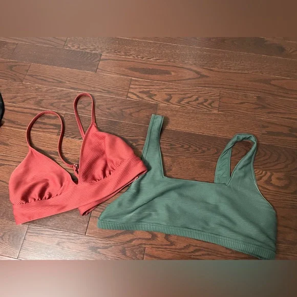 Elegant ribbed bikini set in dark green / coral