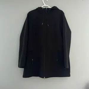 George Fall jacket. Size XL, 59 cm pit to pit, 73 cm in length. This jacket is black with two zipper pockets and velcro on the wrists to make smaller. 97% polyester 3% spandex.