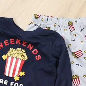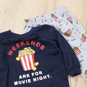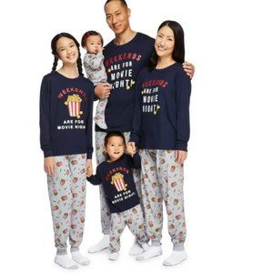 Make family movie night comfier and fun by matching with the whole family in George family movie pajamas. Each piece is made from yummy jersey knit. The tee is styled with a crew neckline, long sleeves, and a graphic print, while the pant features an elasticized waistband, an all-over print, and fitted cuffs.