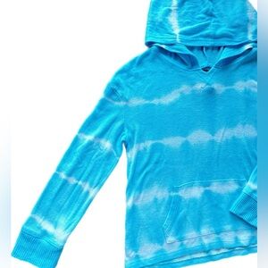 Blue & white tie dye hooded long sleeve tee shirt