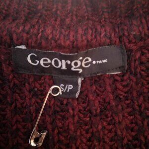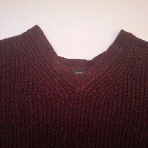 George Ladies Size Small Rounded Hem Burgundy with Black V-neck Sweater