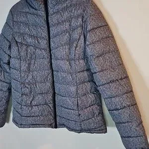 Stylish gray puffer jacket by George. Features a quilted design. Perfect for cold weather.