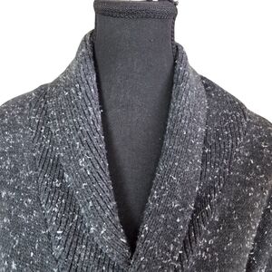 Cozy and stylish cardigan with a shawl collar. Features a speckled design and button closure. Length 29" Bust 48" Sleeves 25"