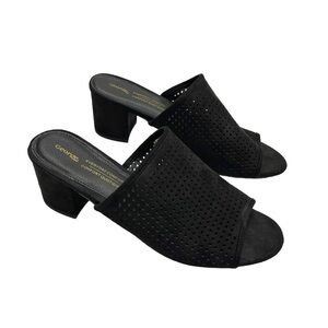 George Mules black Peep Toe slide fits 8 - 8.5 US heels