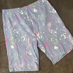 Stylish legging style shorts with a multicolor pattern. Comfortable and stretchy.