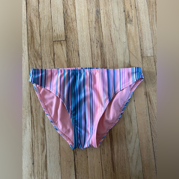 Vibrant bikini bottom with multicolor stripes. Ideal for summer fun.