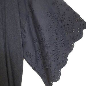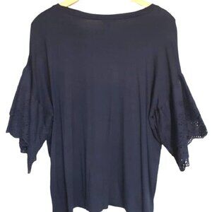 George Navy Blue Eyelet Lace Flutter Sleeve Shirt Women's Size L