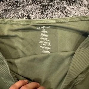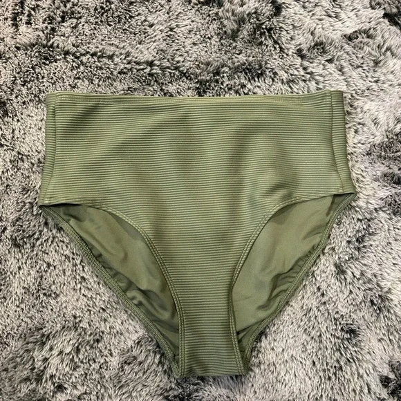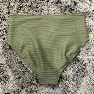 George high-waist bikini bottom in olive green. Ribbed stretch fabric for comfortable fit. Clean lines and a flattering silhouette. Easy staple for swim rotation. Never worn!