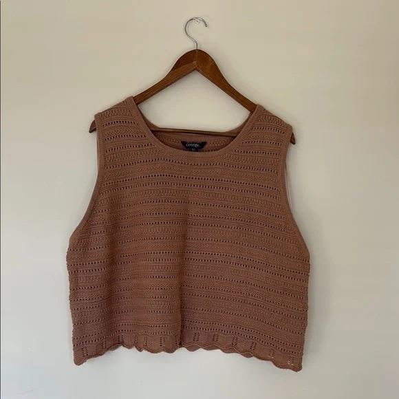 Adorable sweater vest/knit tank top in a pinkish/brown. The cropped fit adds a trendy touch, making it ideal for layering or wearing on its own. Worn and washed once.