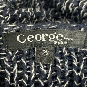 George Plus Marled Knit Navy V-Neck Pullover Sweater Sz 2X