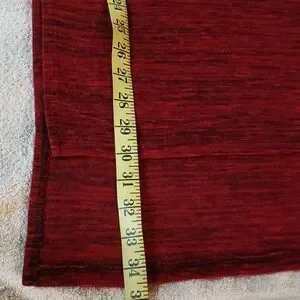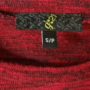 Casual red tunic length tee with humorous text. Soft fabric. Perfect for everyday wear. Features long slits on side seams up to about 5" below arm pit