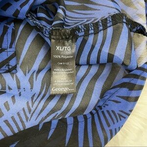 George Short Sleeve Button Down Blouse, Black and Blue Palm Leaf Print, Size XL