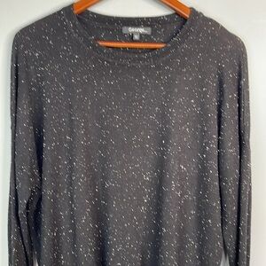 George Speckled Slub Knit Lightweight Long Sleeve Sweater Black White Hi Lo XXL