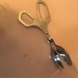 Elegant stainless steel salad tongs. Perfect for serving salads and pasta. George Stainless Steel Tongs made in China. Great for salad-used please check pics.