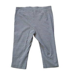 Extremely comfortable stretch capris pants. Black and white diamond pattern. Small 1.5" slit at bottom of leg on side.