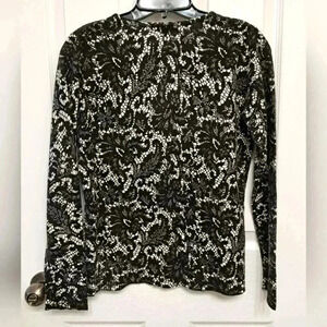 George Sweater Black and White Print Cardigan Medium Crewneck Button Front