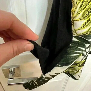 Yellow, black, and green in colour with fun leaves pattern.
