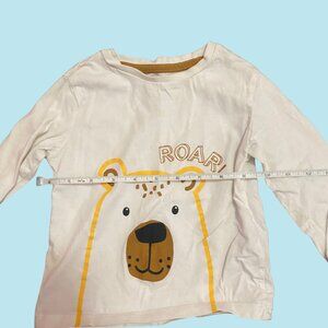 🐻 George Toddler Long Sleeve Tee – White “ROAR” Bear Graphic Top (Size 2T)
