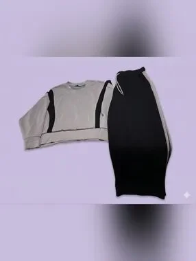 Black & Tan George branded tracksuit. Two tone, both top and bottoms. Bottoms have pockets and draw string. Worn once indoors. Size is xl but can definitely fit 1x Fabric has stretch and is very soft.