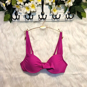 Experience the perfect blend of style and support with the George Twist Front Padded Underwire Bikini Top! This chic top features a flattering twist front design, padded cups for added comfort, and underwire support for a confident fit. Elevate your swimwear game with this must-have top - get yours now! New, never worn!