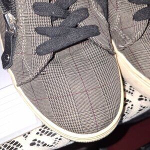 George Umber Plaid Knit Sneakers - Side Zip & Black Laces - Women's Size 9