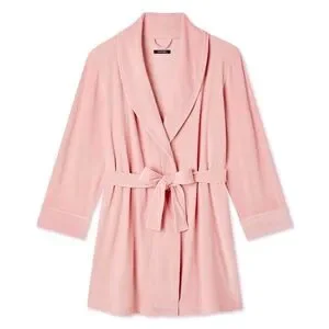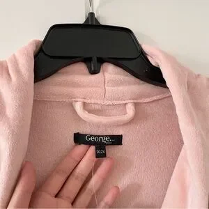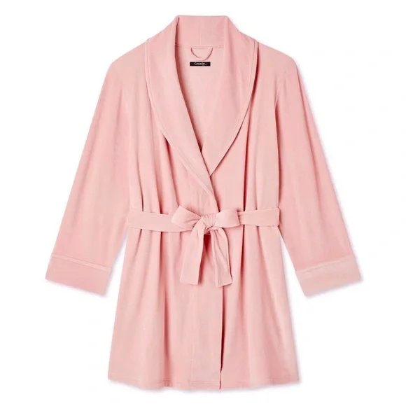 Wear George women’s velour robe over a tank and short or tee and pant nighttime ensemble for an extra cozy layer when lounging on the couch. Made of velour, it’ll be soft and comfy to wear while you lounge around. The robe is designed with a shawl collar, long sleeves, an open-front style, and a tie at the waist. It’s finished with a hang loop for easy storage.