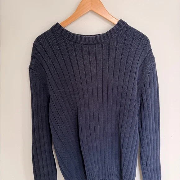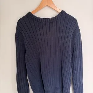 Elegant navy sweater with ribbed texture. Ideal for layering.