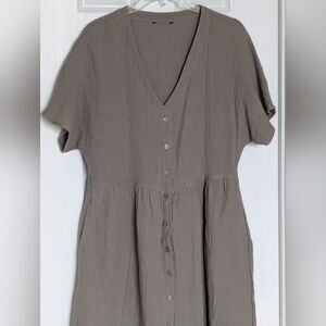 George Women's (Size L) Khaki Colored Cotton Short Sleeve Dress w/Pockets