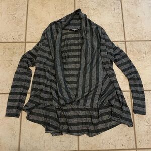 George, cardigan, open cardigan, grey, silver, striped, metallic, shimmer, sparkle, knit, layering, XL, plus size, comfortable, versatile.